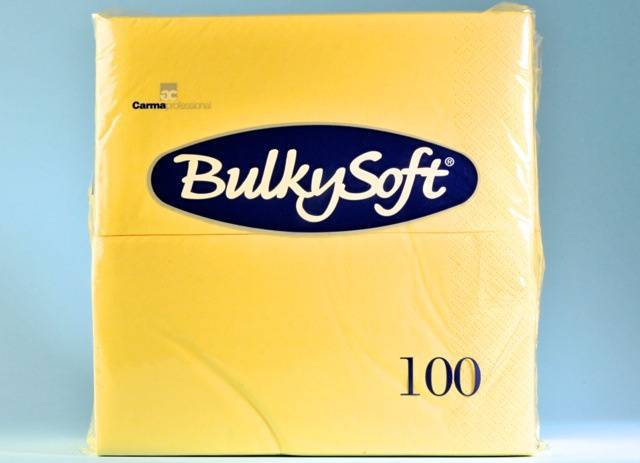 Serviette de table 40 x 40cm BulkySoft 3 couches plié en tête 1/4, 1000 pièces. Jaune |