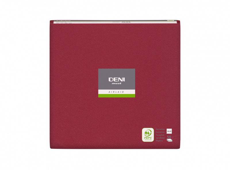 Serviette de table 40 x 40cm Premium Deni Airlaid plié en tête 1/4, 600 pièces. Bordeaux |
