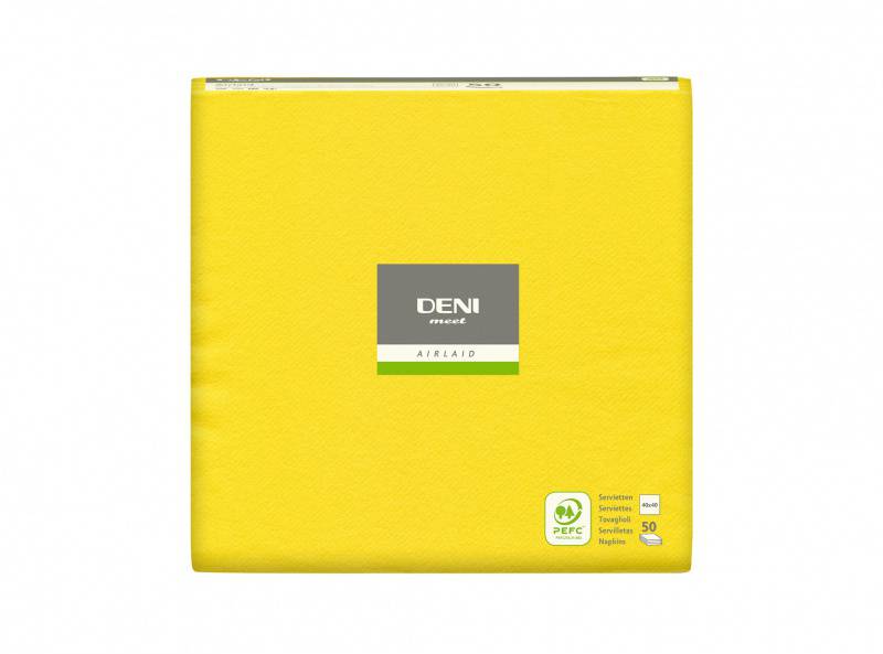 Serviette de table 40 x 40cm Premium Deni Airlaid plié en tête 1/4, 600 pièces. Jaune |