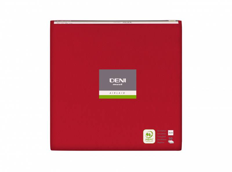 Serviette de table 40 x 40cm Premium Deni Airlaid plié en tête 1/4, 600 pièces. Rouge |