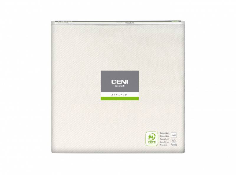 Serviette de table 40 x 40cm Premium Deni Airlaid plié en tête 1/4, 600 pièces. Blanc |