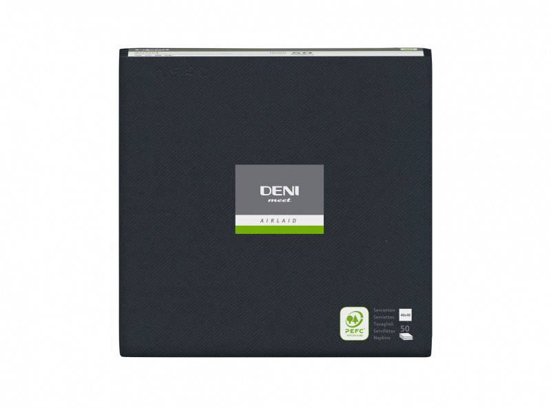 Serviette de table 40 x 40cm Premium Deni Airlaid plié en tête 1/4, 600 pièces. Noir |